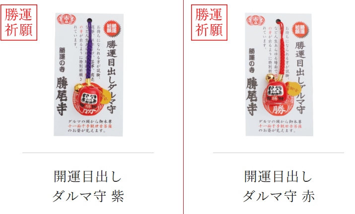 勝尾寺自古以來就被尊為勝利之寺。 這座擁有1300多年歷史的寺廟,曾接待過包括源氏和足利氏在內的各個時代的眾多統治者。即使在今天,來自世界各地的人們依然會前來祈求生活中的勝利,無論是疾病、事業、考試、運動或愛情方面的勝利。 供奉架上琳瑯滿目的「勝利達摩」是由信眾們在祈願成功後捐贈的,他們在這裡許下了願望並表達了感激之情。勝尾寺一直以來都秉持著「勝利」並非戰勝他人,而是「戰勝自我」的理念。將願望寄託在勝利達摩上,面對自我,克服自身的弱點,願望就會實現。 呢間寺最出名就係達磨許願 達磨可以運送回來有3個SIZE 其次推介,這個內有籤文 六十四卦ダルマみくじ:六十四卦達摩吉祥物 開運ダルマ守:幸運達摩護身符 福よせ箕財:招財進寶 ダルマ鈴キーホルダー守:達摩鈴鐺鑰匙圈護身符 願いを成す守:心想事成護身符 開運目出しダルマ守 紫/ 赤:喜慶達摩護身符(紫/紅) 職運守:事業運護身符 商売繁盛守:生意興隆護身符 荒神カード守:阿拉金牌護身符 幸守:好運護身符 厄除け七色ストラップ守:辟邪七彩掛件護身符 ご本尊梵字入り水晶守:主像梵文水晶護身符 観音カード守:觀音牌護身符 水晶ダルマキーホルダー守:水晶達摩鑰匙圈護身符 虎目石ダルマキーホルダー守:虎眼石達摩鑰匙圈護身符 無病たん守:無病無恙護身符 健康守:健康護身符 げんきおまもり:元氣護身符 こっぽり縁結び:姻緣好運護身符 学業守:學業護身符 べんきょうおまもり:學習護身符 ランドセル守:書包護身符 ミニ交通安全守:迷你交通安全護身符