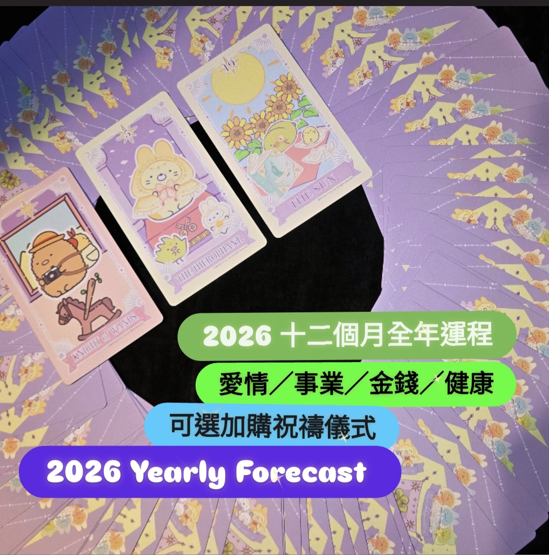 2026年十二個月既流年運程又開始可以預約了,本店主要提供文字上既回覆,客人就不用帶紙筆來抄細或錄音啦! 提供時間:由十一月一日至二月廿八日 先過數,本店會在48小時內提供個人運程結果,結果包括每個月的愛情,事業,金錢,家庭同其他的注意事項,價錢一個人$718 (會員優惠$698) 今年加入新的項目,在推算流年的同時,並加入全年的祝禱儀式,淨化自身,消除整年的阻礙,讓未來一年也可以生活開心順暢,價錢只需要另加$120。 如只想做此儀式而不做全年運程,價錢會是$250 請把個人名字,出生年月日和聯繫方法留在備註欄 2026 year forecast individual luck report Report will give you about what you should aware in love, career, money, family in each month Time: from 1 Nov to 28 Feb Payment : $718/person (Member price $698) Report will deliver within 48 hrs after payment New projects are added this year. While to get the new year forecast report , it also joins the year-round prayer ceremony to purify oneself and eliminate the obstacles of the year, so that the whole year can also live happily and smoothly. The price only needs an additional $120. Only have the ritual,without the monthly forecast it costs $250. please leave your name, date of birth & contact way in the comment box at the checkout page