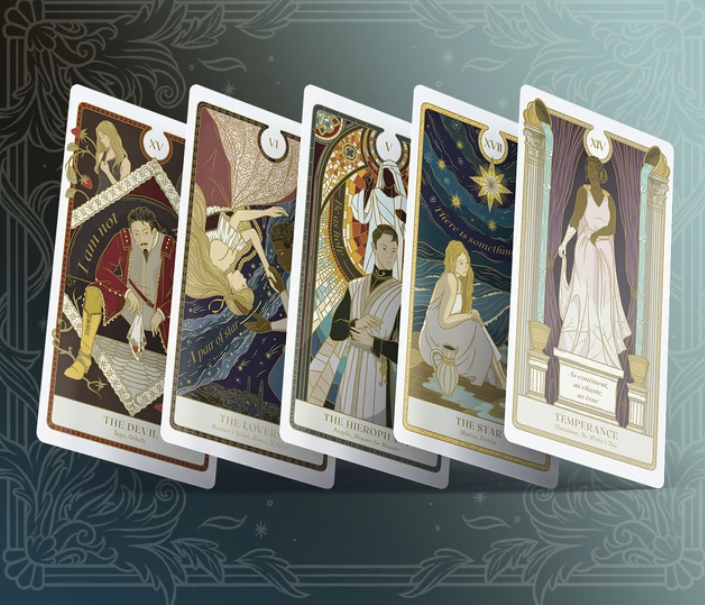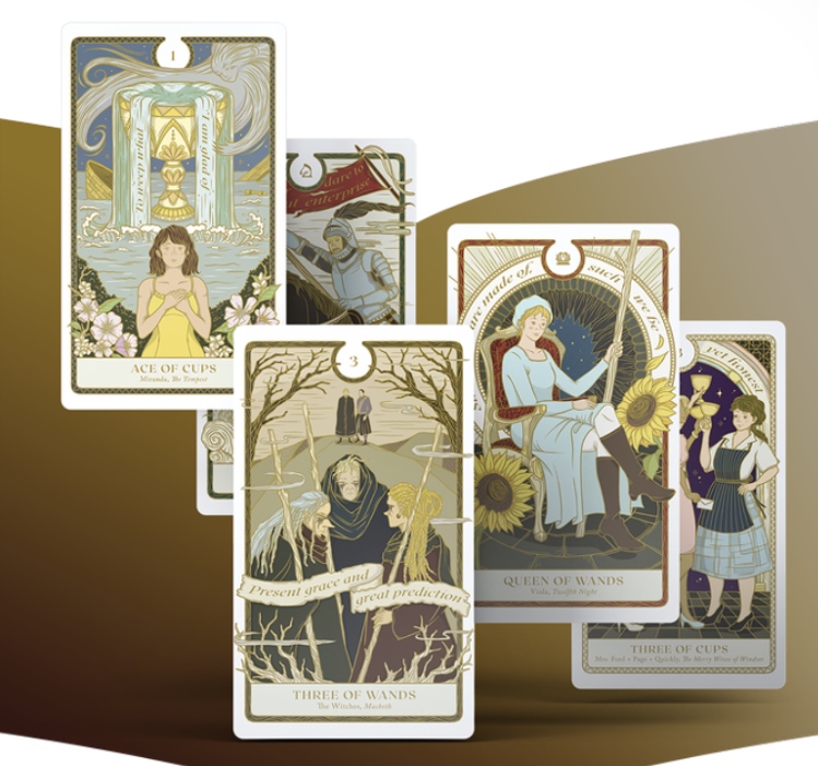Bard’s Arcana is a literary tarot deck by Greg Taubman and illustrator Eunice Choi, featuring watercolor art in a classical, theatrical style. Inspired by Shakespeare and the Waite-Smith Tarot, each card includes a quote and scene. Perfect for tarot readers and theater lovers who value symbolic storytelling. Product information Bard’s Arcana: The Tarot of Shakespeare – Where Shakespeare Meets the Tarot Bard’s Arcana: The Tarot of Shakespeare by Greg Taubman and illustrator Eunice Choi is a 78-card tarot deck merging the worlds of William Shakespeare and the iconography of the Waite-Smith Tarot. Each image pairs a character or scene from the plays with the symbolism of the traditional tarot, creating a deck that is both literary and visually profound. Why choose this deck? Connects the language and symbolism of Shakespeare with the timeless structure of the Waite-Smith Tarot. Includes 78 cards (22 Major Arcana and 56 Minor Arcana) printed on 350 gsm cardstock with a silky matte finish. Each card features a quotation from the plays, with intricate backs inspired by the wrought-iron gate at Shakespeare’s Globe in London. Design and creators Illustrated by award-winning designer and artist Eunice Choi from Seattle, known for her background in sculpture, printmaking, and watercolor. Written and conceived by theater director and dramaturg Greg Taubman, whose work spans The Public Theater and the Oregon Shakespeare Festival. Together they blend theater, literature, and art into a unified visual narrative. Set contents 78 cards: 22 Major Arcana and 56 Minor Arcana (Wands, Cups, Swords, and Pentacles) 120-page handbook by Greg Taubman with original spreads and interpretations Dimensions: approx. 2.75" x 4.75" Printed on 350 gsm cardstock with silky matte coating Illustrations by Eunice Choi Language: English Limited first print run of 10,000 decks For whom? Perfect for tarot readers, theater lovers, and Shakespeare enthusiasts seeking to explore symbolic links between art, story, and introspection. Ideal for both personal readings and literary study. Usage tips Try the four original spreads – Comedy, Tragedy, History, and Sonnet – from the handbook. Each card’s quote adds depth and context to your readings.