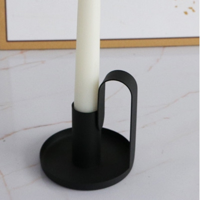 Wrought iron lacquered black candle holder